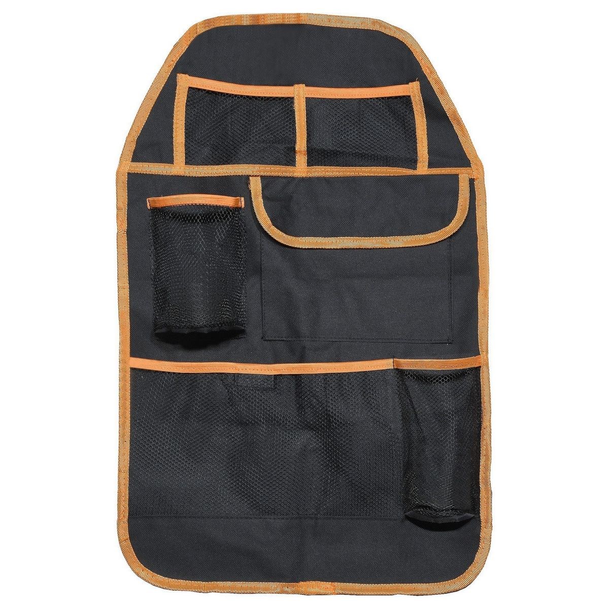 Organizér na predné sedadlo Orange, 37,5 x 58,5 cmOrganizér s dômyselným systémom 6 sieťovaných vreciek udrží vaše veci zrovnané a vďaka tomu sa v nich dobre vyznáte.Dve z vreciek sú určené na fľaše a dve majú uzatváranie na suchý zips.Organizér je obšitý kontrastným oranžovým lemom a vrecká sú opatrené gumou oranžovej farby.Skvele chráni sedadlo pred znečistením a ľahko sa upevňuje pomocou nastaviteľných popruhov s klipom.