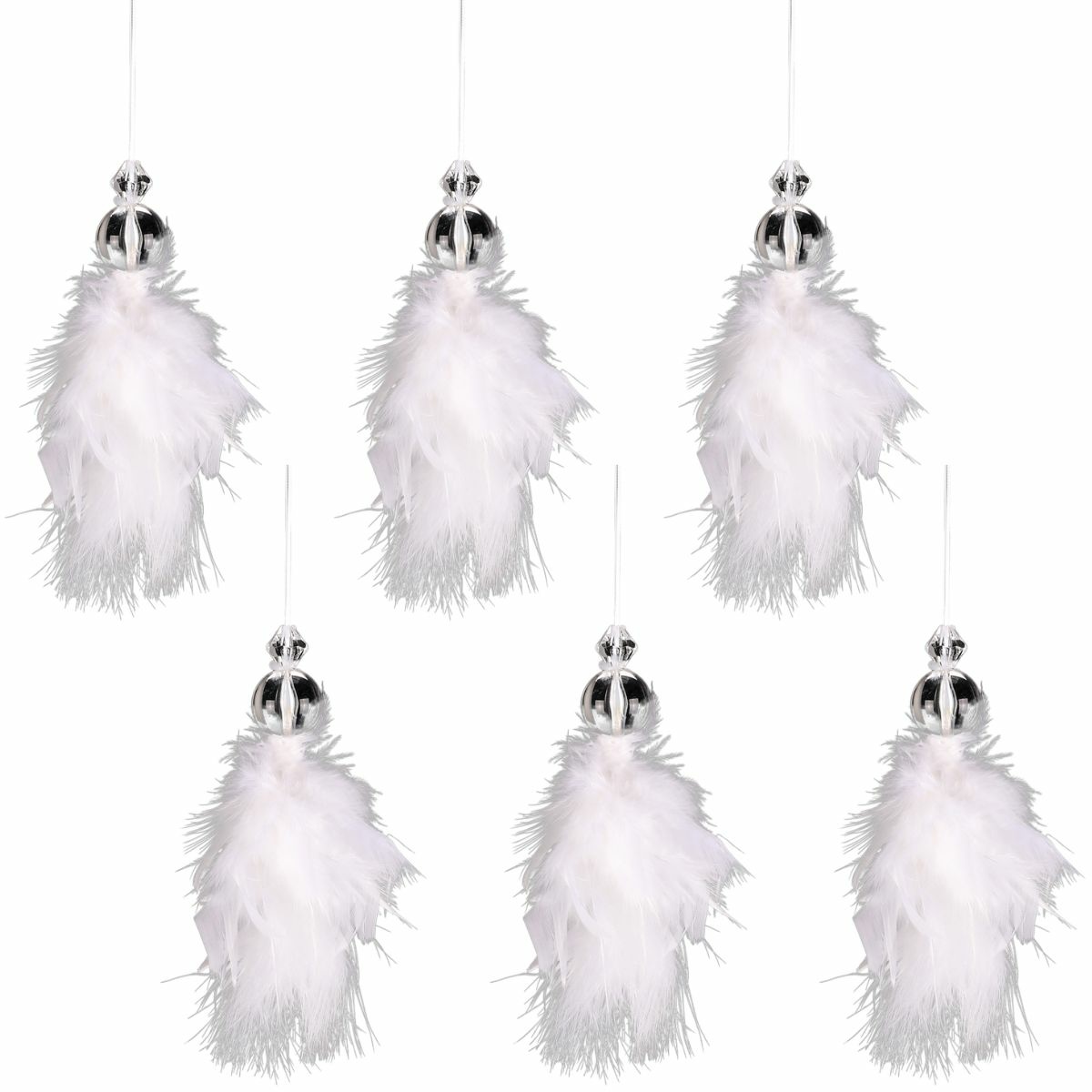Závesný anjelik z peria, 17 cmNádherná a originálna dekorácia z pierok skvele doladí vašu vianočnú výzdobu. Dekorácia je vhodná na zavesenie na vetvičky vo váze aj na vianočný stromček.